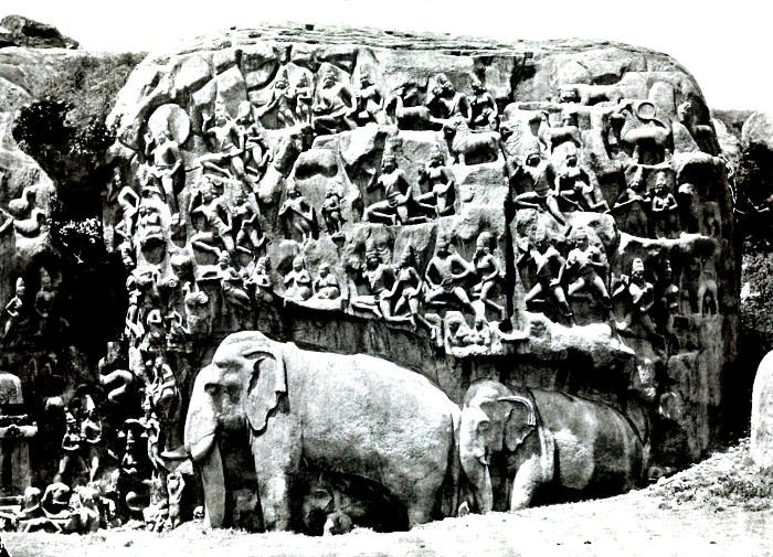 Indra was attended by a dog, as befitted a deity of primitive huntsmen. After the early Aryan period, he showed less favour for his bays and chariot, and seated himself upon a great white elephant, “the handsome and ever victorious”, named Airavata; it “was furnished with four tusks” and “resembled the mountain of Kailasa with its summits”.