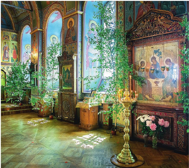 И зажигаются, отражаясь в воде, три свечи над моей крещальной купелью – в зеленом березовом полумраке, прорезанном полосами света из верхних окон.