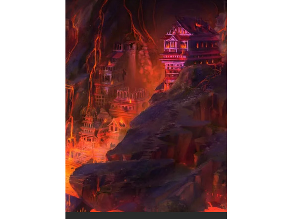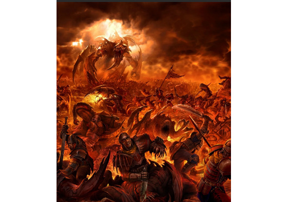 Спускаясь в землю находящие уже ниже подножия горы, Рон попал в помещение, где только одни проходы. Уходили во все направления, но двигаться подумал самый низ надо. Спустился этажей больше сотни, некого не было на пути. Одна темнота, сыро, и становилось теплее и теплее. Спустился до самого низа, Рону увиделась картина, в центре как у кузнецов огонь и огромный стол, на нем лежали спящие черви, на них одевал доспехи, существо с множество рук. Рон спустился к нему.