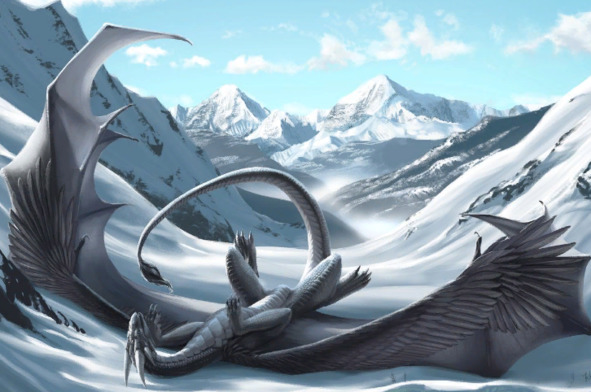 Пролетая дальше, Рон увидел дракона, лежал на снегу, с белой шерстью, только в одном месте в области сердца, давалась в глаза красное пятно.