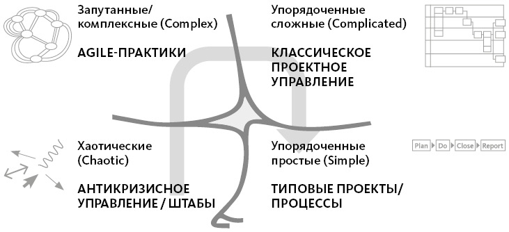 Проекты иногда попадают в этот режим, например при сваливании в кризис. Со многими это недавно случилось – при введении ковидных ограничений. В том же «Кварке», например. Но в целом этот домен не про проектное управление. Сначала нужно стабилизировать ситуацию, и только потом запускать проекты. Хотя есть отдельный вид проектов, специфический для России, – форсированные, или, как их еще называют, мобилизационные. Они запускаются в очень высокой степени неопределенности и под большим давлением внешних факторов. Я как раз исследую такие проекты и даже с коллегами в 2023 году выпустил доклад «Форсированные мегапроекты. Российский опыт двух столетий»[1]. Но о том, как управлять такими проектами, видимо, будет отдельная книжка…