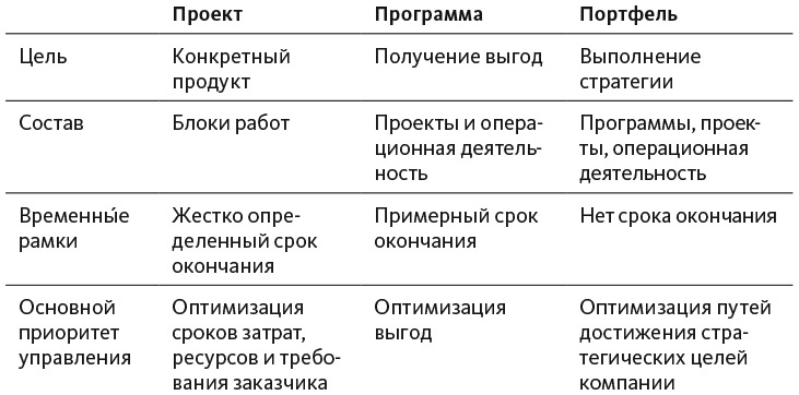 Таблица 3.3. Проект, портфель и программа