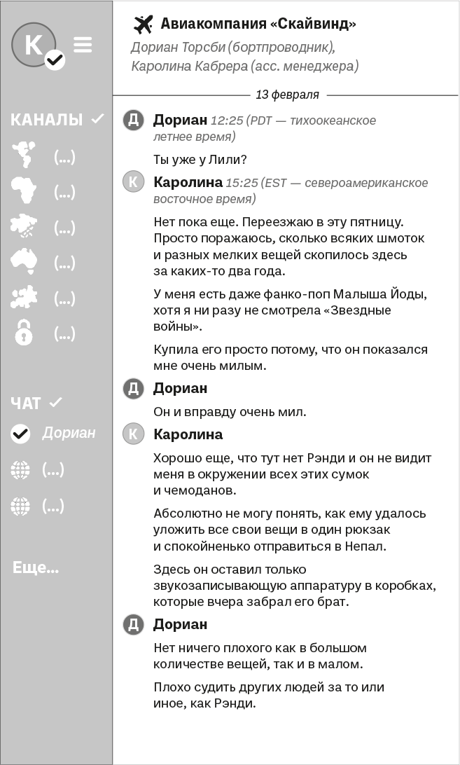 – Из Парижа, – ответил он с нескрываемым удовольствием. Пусть и с одним участником, но проект книжного клуба его воодушевлял. Он уже начинал думать, что ничего из этой затеи не получится. – Ее зовут Кая, работает в кафе аэропорта имени Шарля де Голля, в ВИП-зоне нашей авиакомпании.
