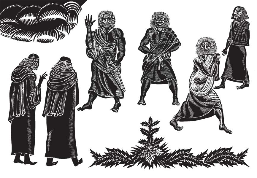 Меж тем сумрак вокруг сгустился. За разговором я не заметил, как мы вступили в тёмный лес… Так мне показалось вначале. Однако, оглядевшись хорошенько, я понял, что это не деревья, а столпившиеся в тяжком безмолвии души человеческие. Мы шли довольно долго среди них, забирая вправо. Наконец впереди забрезжило некое подобие света – то ли уголья тлеющих кострищ, то ли далёкие зарницы. В этом диковатом свечении можно было различить несколько величественных фигур.