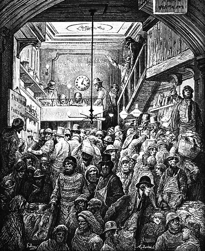 Гюстав Доре. Биллинсгейтский рынок после открытия. Из серии Лондон