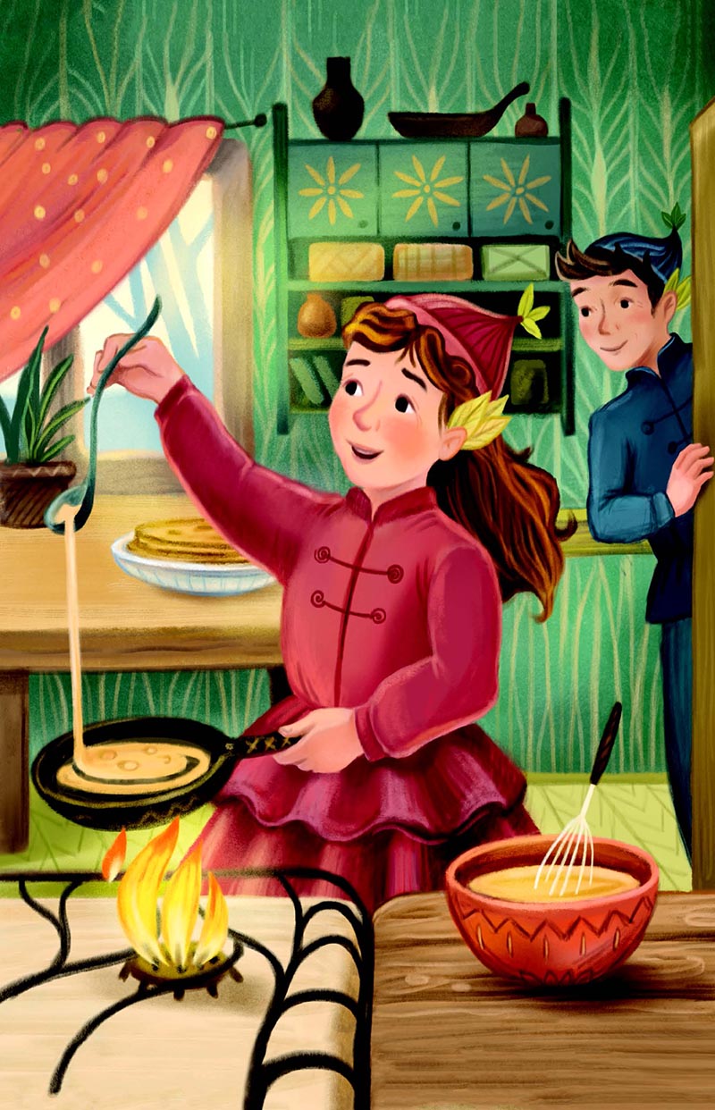 В ловких маленьких ручках Эммы быстро закипела работа. Тесто было раскатано на тонкие пласты, порезано и скручено в полоски-узелочки. На горячей сковороде зашкворчало масло. Как только тоненькие полоски из теста попадали на сковородку, они вмиг надувались, превращаясь на глазах в сладкое чудо – хрустящие печеньки-палочки. За хруст их и прозвали хрустами.
