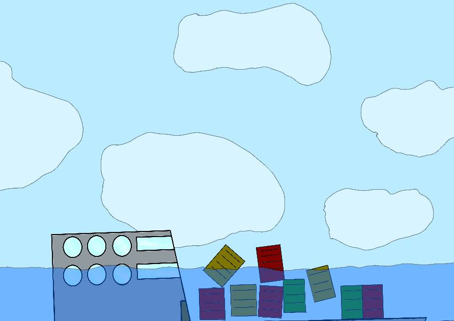 Тем временем отплыла вторая тройка шлюпок. После трёх контейнеров матросы устали и сели на палубу.