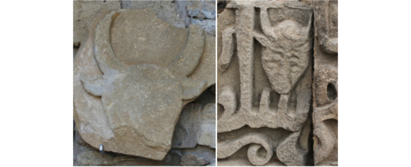 Из материалов археологических раскопок значительный интерес представляет также большой камень с изображением головы быка, найденный в 1964 г. у фундамента городской стены на северо-восточной стороне. По своей форме это изображение почти в натуральную величину аналогично изображениям над Шамахинскими воротами. Подобные изображения головы быка найдены также в Бакинской бухте.