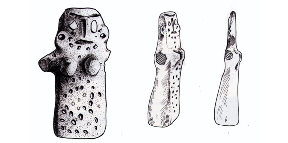 Такие статуэтки носили культовый характер, и их иногда клали вместе с умершей в могилу. Здесь также были найдены железный наконечник стрелы, фрагменты керамики, большой кувшин, подобный по форме античным амфорам и относящимся к античному периоду, а также две подставки – базы колонн, подобные колоннам больших городских зданий античного периода.83