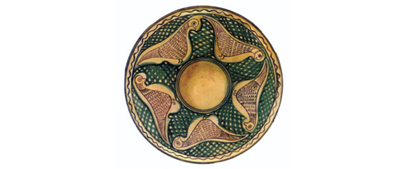 В нижнем культурном слое «Ичеришехер» декоративно-художественная керамика с орнаментальной и изобразительной росписью встречается довольно часто. Среди выявленных материалов имеется небольшая глазурованная чаша с полихромной росписью и гравировкой, которая обнаружена на восточных склонах бакинского холма, на территории тесно расположенных жилых кварталов города. С внутренней стороны в центре днища чаши изображены три чешуйчатые рыбы, плавающие одна за другой в направлении против часовой стрелки. Фигуры рыб размещены таким образом, что в центре их образовался равнобедренный треугольник.87