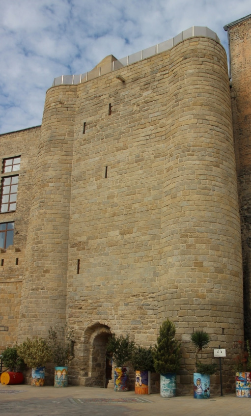 К числу апшеронских башен можно с уверенностью отнести и четырехугольную башню – донжон в самом городе Баку. Он расположен у северо-западной крепостной стены, к которому впоследствии примкнуло здание президиума Академии Наук Азербайджана.