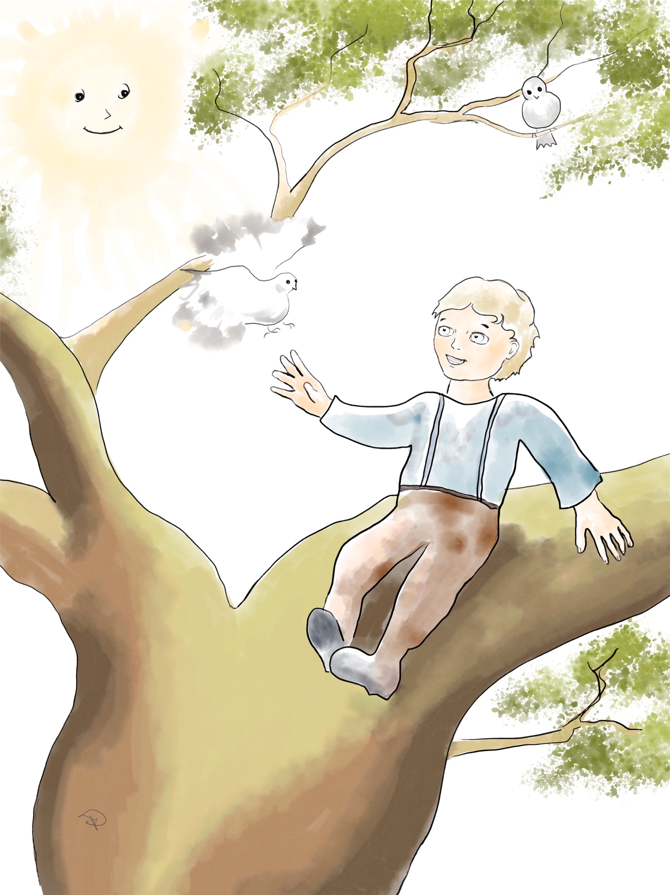 Ein andermal kletterte er bis in die Wipfel der Bäume und flog in Gedanken mit den Vogelschwärmen in weite Fernen und erzählte seiner Nonna von Reisen in die wundersamen Gegenden sichtbarer und unsichtbarer Welten.