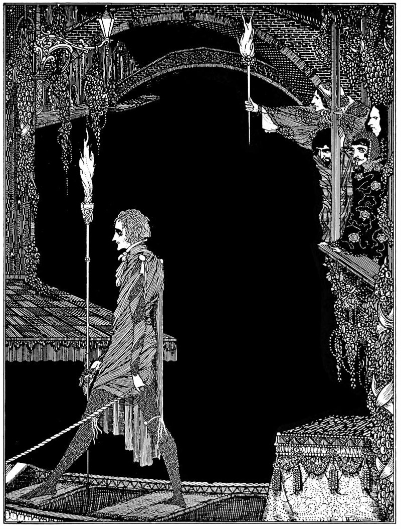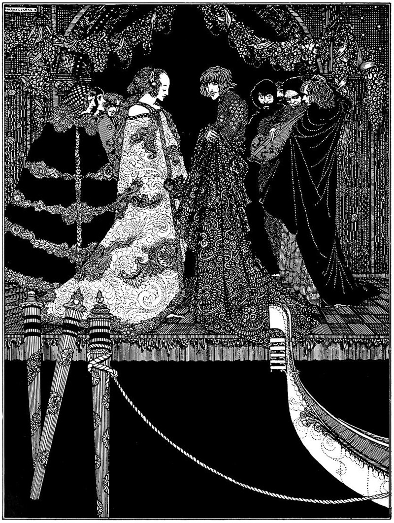 Была необыкновенно темная ночь. Большие часы на Пьяцце пробили пять часов итальянского вечера. Сад Кампанильи опустел и затих, почти все огни в старом Дворце дожей погасли. Я возвращался домой с Пьяцетты по Большому каналу. Но когда моя гондола поравнялась с устьем канала Св. Марка, дикий, истерический, протяжный женский вопль внезапно раздался среди ночной тишины. Пораженный этим криком, я вскочил, а гондольер выронил свое единственное весло, и так как найти его было невозможно в этой непроглядной тьме, то мы оказались во власти течения, которое в этом месте направляется из Большого канала в Малый. Подобно огромному черному коршуну мы тихонько скользили к мосту Вздохов, когда тысяча огней, загоревшихся в окнах и на лестницах Дворца дожей, внезапно превратили эту угрюмую ночь в багровый неестественный день.