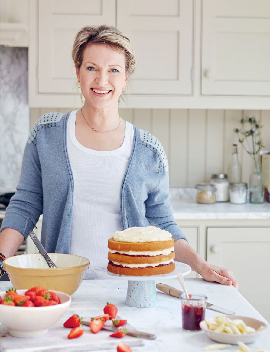 6. Divide the batter evenly between the two prepared tins. Bake for 12–13 minutes until the cakes are shrinking away from the sides of the tins and are golden and firm to the touch on top. Remove from the oven and put a clean tea towel over the tins. After 5 minutes, turn them out on a wire rack and leave them to cool completely. If you aren’t decorating them immediately, wrap them in cling film once they are cool – they will go stale quickly as they don’t have much fat in them.