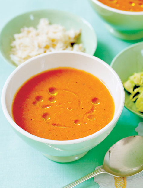 I adore this soup because it tastes of summer to me. It’s delicious served as it is, or drizzled with pesto. To make it more of a meal, try serving with the cheese and basil quesadillas on page 259.