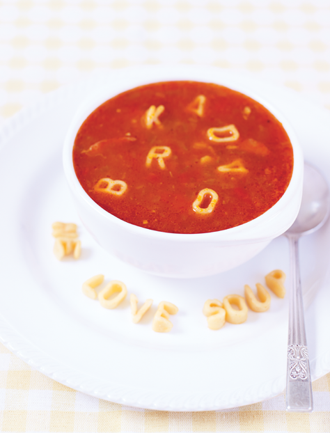 100g (3½oz) alphabet pasta or other small pasta shapes