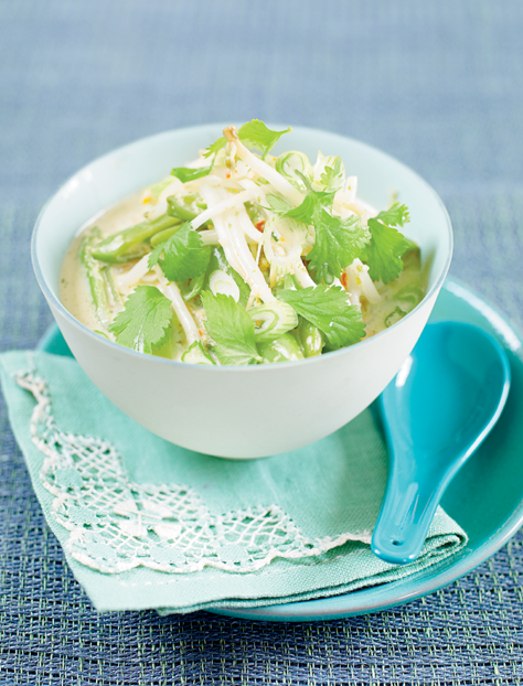 Fragrant sugar snap and beansprout noodle laksa