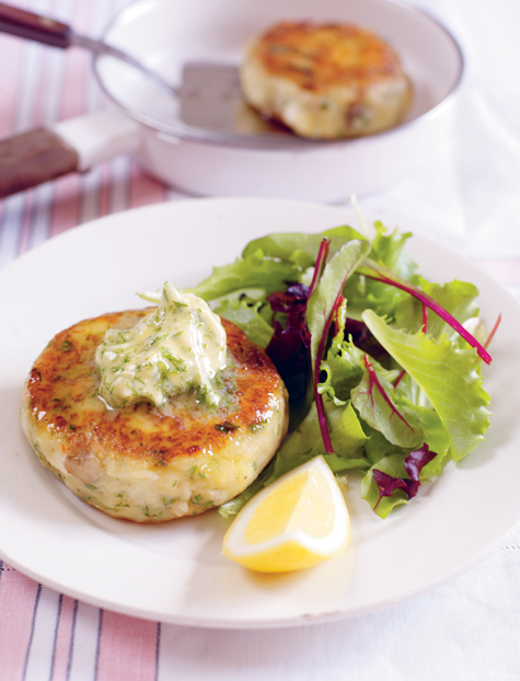 7 Divide the fish cakes between plates, add some salad leaves to each plate and serve immediately with your choice of accompaniment from below.