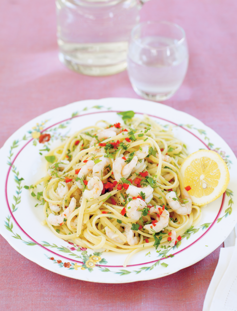 For a quick and easy snack or a simple starter, simply cook and serve the shrimps or prawns with crusty bread instead of the linguini.