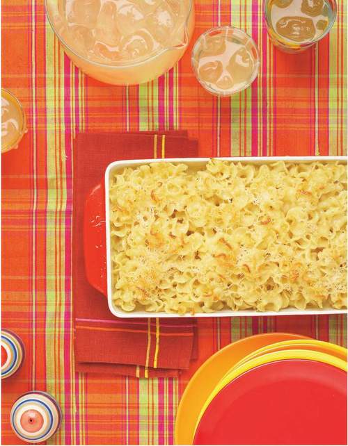 My sister and I absolutely loved this kind of cheesy pasta when growing up, and now I make it for my children. Sometimes I add chopped parsley. This can be prepared in advance and baked just before you are ready to eat.