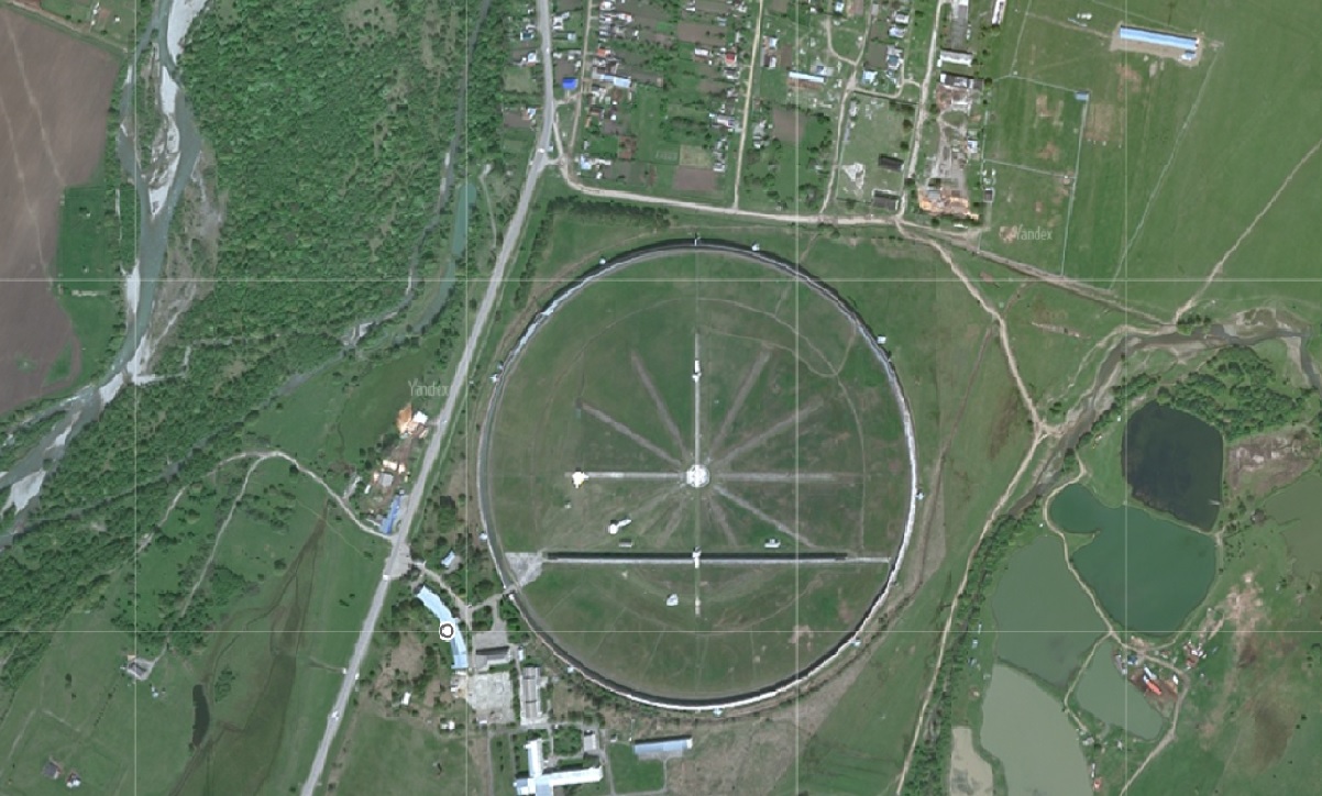 43.860898, 41.582833 Карачаево–Черкесия. Высота 950м над уровнем моря. РАТАН-600 (Радиоастрономический телескоп Академии наук)