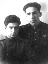 Два друга. Апрель, 1945, госпиталь № 5004. На обороте фотографии надпись: Слева – Портнов Эмиль Лазаревич, капитан. Справа – Михаил ОРБЕЛЯН, майор (? – гвардии майор). По рассказам Эмиля Лазаревича Портнова его друга Михаила ОРБЕЛЯНА выписали из госпиталя № 5004 в апреле 1945 года. Михаил был отправлен на Дальний Восток. Предположительно погиб при Квантунской операции, так как от него больше вестей не приходило.