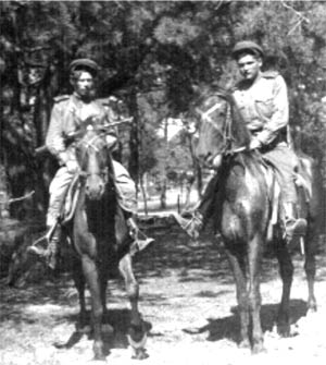 Два всадника – два друга Портнова Э. Л. На обороте надпись: Польша, Радосць. Август 1944, капитан ТАЛПА ПАВЕЛ (он справа, без автомата – прим. моё), сержант СИДОРЕНКО ТИМОФЕЙ.