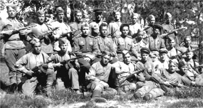 Друзья-однополчане. На обороте надпись: Август 1944 г. Польша, Радосць. 71 отд. Развед-рота 175 Уральско-Ковельской ордена Красного Знамени стрелковой дивизии.