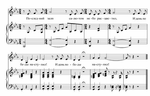 2. И страшнее войны вся планета не знала:Расплавлялись в огне и земля и металл,А Отчизна моя к миру всех призывала,Всю себя отдала на победный алтарь.Припев3. Путь геройский прошли мы к Великой победе,Ратный подвиг свершив, – разгромили врага!Дня счастливей народ мой спасённый не ведалИ прекрасней весны, что была так горька!Припев