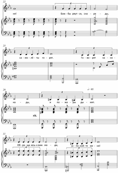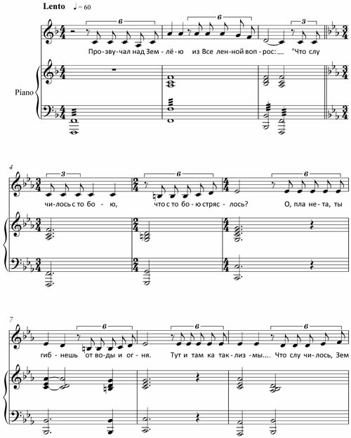 1. Прозвучал над ЗемлёюИз Вселенной вопрос:"Что случилось с тобою,Что с тобою стряслось?2. О, планета, ты гибнешьОт воды и огня.Тут и там катаклизмы…Что случилось, Земля?"3. И Земля отвечала,Лишь на миг замерев:"Видно, я одичала,Мой народ озверел…4. Как в бреду, задыхаюсь,И от горя черна,День и ночь возмущаюсь, —Так терзают меня!5. Бомбы рвутся, снаряды,Самолёты горят.Говорят канонады,И пожары дымят.6. Обращаюсь к вам, люди:Успокойте меня!Будьте мудрыми, люди,Сохраните меня!"7… Вновь разносится где-тоБезответный вопрос:"Что случилось с планетой?Что с Землёю стряслось?"