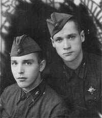 С другом – справа Евгений Карташёв. Курсанты Армавирского авиаучилища. 1941 год.