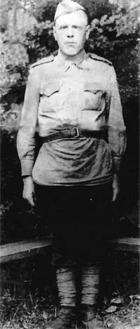 На обеих фотографиях отец в гимнастёрке под ремнём, в галифе, пилотке, обмотках и ботинках. На фото 1941 г. – без погон, на фото 1943 г. – уже с погонами. И, видимо, за всю жизнь он не износил ни одной пары сапог…