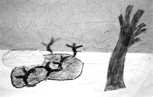 Ядовитое белое облако накрывает последний островок жизни на земле. Аппликация, фломастер. 2009 г.