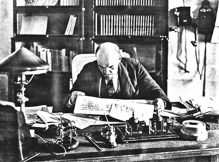 Председатель Совета народных комиссаров РСФСР в своем кабинете в Кремле