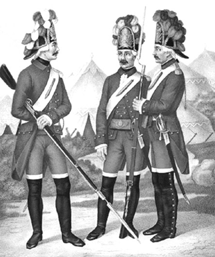 Гренадеры полков лейб-гвардии: Преображенского, Семеновского, Измайловского с 1763–1786 гг.