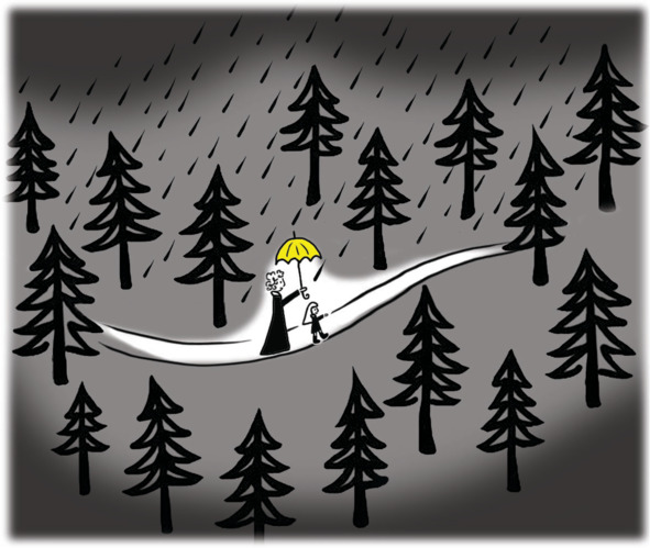 К счастью, этим промозглым осенним днём в лесу гуляла девочка Софи со своей бабушкой. Они шли по той самой тропинке в сторону дому. Внезапно Софи остановилась.
