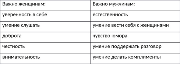 Таблица 4. Разница между женщинами и мужчинами при первом впечатлении. Что больше всего важно: