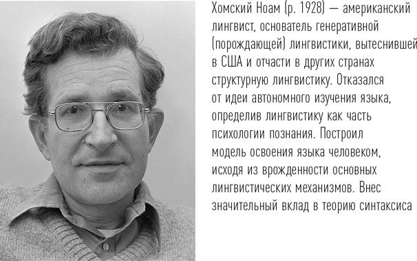 Затем весь XIX в. прошел под знаком сопоставительных исследований как в генетическом плане (сравнительно-историческое языкознание), так и независимо от языкового родства (историческая типология). Большую часть XX в. (эпоха структурной лингвистики) лингвисты стремились охватить своими методами как можно больше языков, идея же их сопоставления уже не была приоритетной. А основатель нового этапа в развитии лингвистики, уже упоминавшийся Ноам Хомский, ограничил сферу своих исследований и сферу исследований большинства ученых его школы английским языком. Он выдвинул в качестве основной задачи лингвистики построение общей теории языка, удобным материалом для которой, естественно, выступает родной язык лингвиста; лишь после этого могут строиться частные теории, учитывающие особенности отдельных языков. А если исходить, как Хомский, из того, что язык – «единообразная система», то любое сопоставление языков в лучшем случае второстепенно. С другой стороны, во второй половине XX в. на новой основе активизировалось и типологическое сопоставление языков, выявляющее общие и особенные свойства языков вне зависимости от их родства, о котором далее еще будет специально говориться.