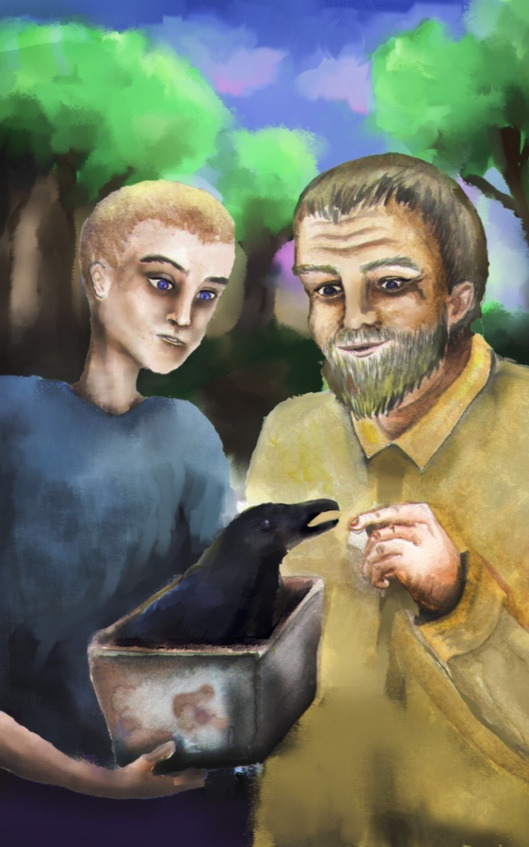 – Я что же, не рассказывал тебе? – взметнул руки старик. – Лет двадцать с хвостиком назад, гуляя по этому самому парку, я наткнулся на вороненка. Этот чудик упал с дерева, так как был еще мал и не умел летать. Но это еще и не самое интересное! Оказывается, у него с головой не все в порядке, и он меня так веселит этим!