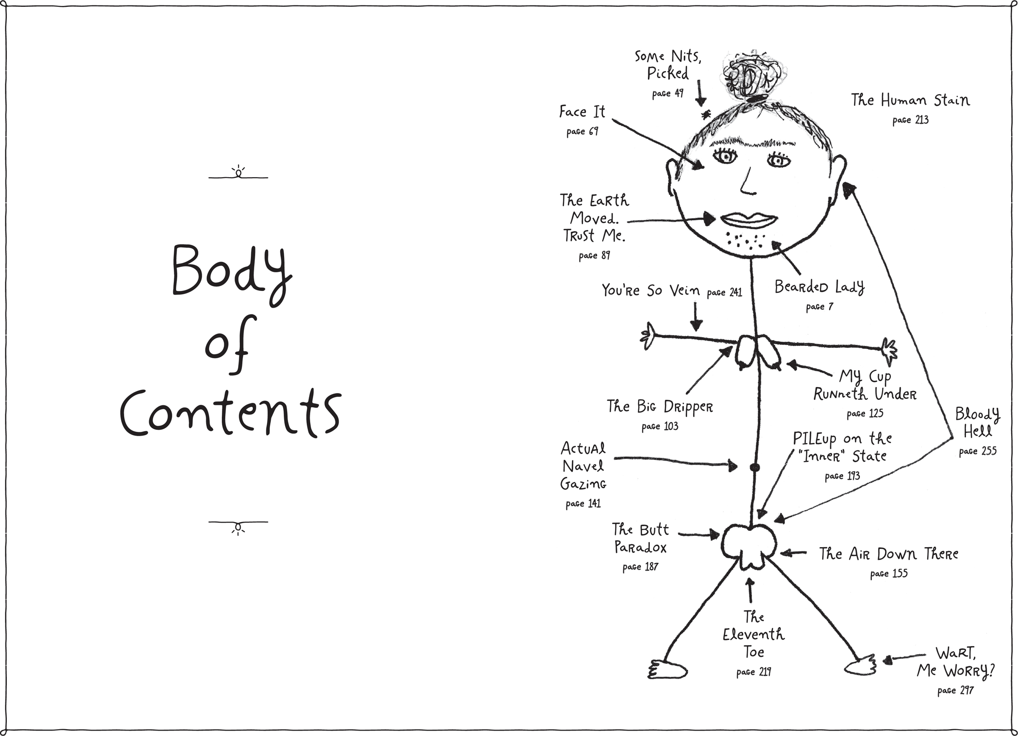 This book won’t cure a bad hair day or a yeast infection, or anything else for that matter, but it is my hope that by holding up a magnifying glass to our beliefs, practices, and nipples, this book might serve as a small step toward replacing self-flagellation with awe, shame with pride, and vag odor with, well, vag odor is kind of inevitable. But get this, PMS might actually be a superpower!