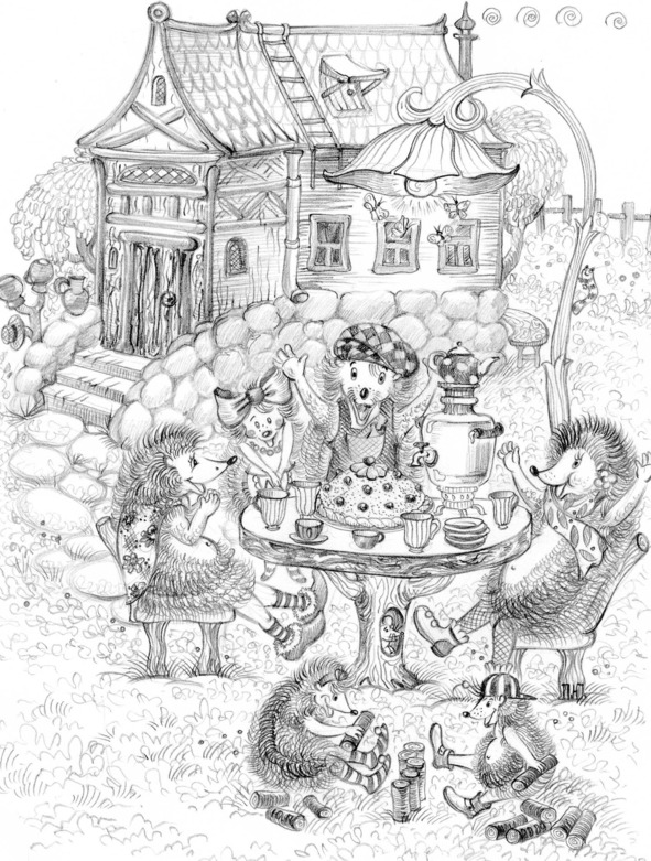 Ежиха Аша нас ждала. Она испекла пирог и поставила большой самовар.