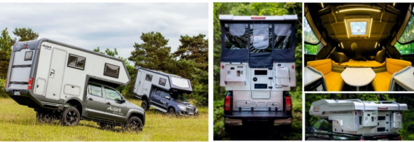Рисунок 1.17. Слева: жилой модуль на пикап «WV Amarok» с жесткими стенами и крышей Немецкого производства. Справа – на ту же марку автомобиля установлен модуль с подъемной крышей, изготовленный в России.