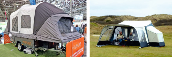 Рисунок 2.3. Слева трейлер «Cabanon Mercury» с кухонным блоком и мойкой внутри. Справа – палаточный прицеп «Campooz» (Нидерланды), с большим багажным отделением.