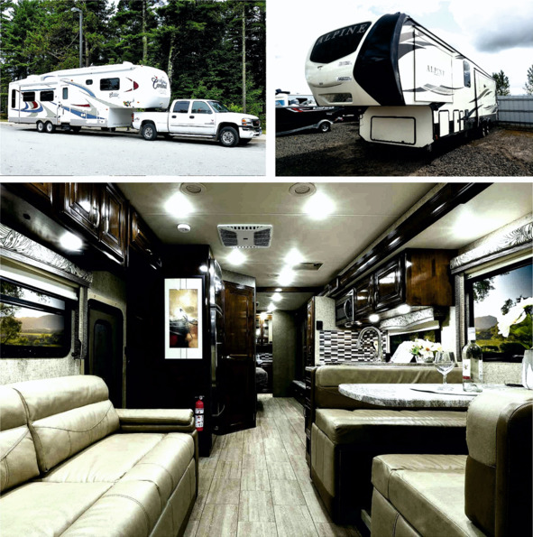 К самым большим, просто огромным роскошным караванам «Премиум- Класса» можно отнести экзотические на Российском рынке полуприцепы «Fifth-wheel», которые производятся в Америке. Мало того, что они могут иметь длину до 14 м (12 метров сам прицеп +4 метра надстройка (альков) над самим тягачом), но и высотой до 4 м. У большинства из них есть выдвижные стены (слайдеры), которые увеличивают жилую полезную площадь почти на треть. Для транспортировки такого монстра используют специальный большой и мощный автомобиль с кузовом пикап, внутри которого установлено сцепное устройство для полуприцепа типа «седло», как на седельных полноразмерных тягачах. Внутренний интерьер по истине раскошен: мебель отделана шпоном дорогих пород дерева, в кухонной зоне столешница, мойка, и рабочий стол выполнены из искусственного камня. Туалетная комната, душевая кабина – все полноразмерное, как в хорошем загородном доме. На борту присутствует встроенный генератор, кондиционер, холодильник. В алькове располагается, как правило, большая роскошная спальня или «домашний кинотеатр». Для гостей и детей есть много свободного места и для них предусмотрен отдельный вход в фургон. Это настоящая пятизвездочная гостиница на колесах.