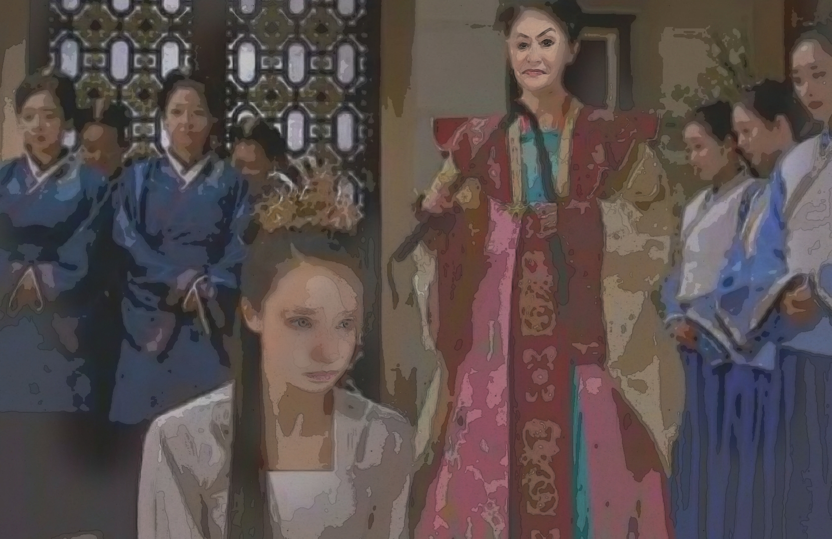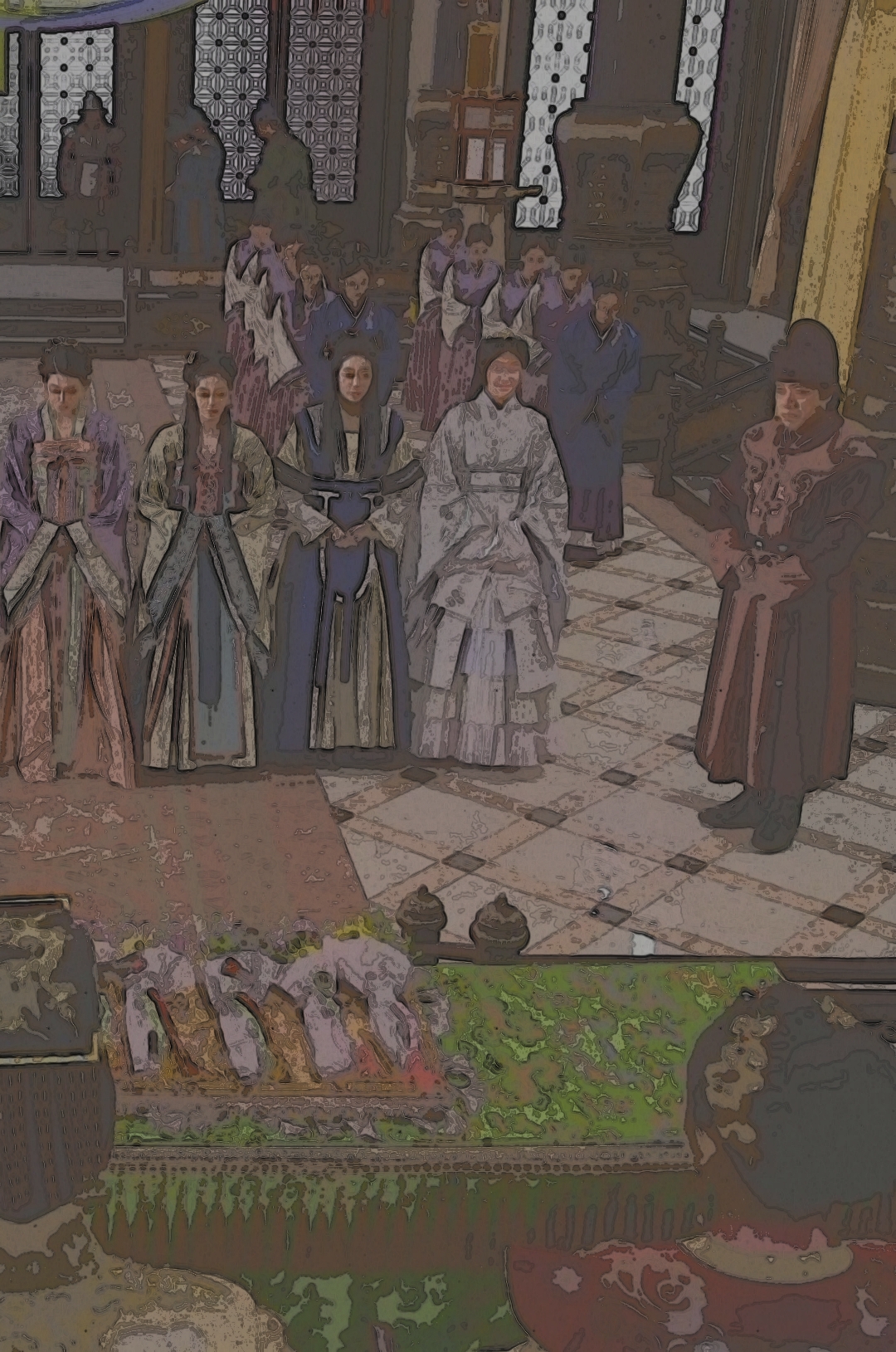 На следующий день Вдовствующая императрица позвала всех жён. Дама Ю оделась красиво, надела драгоценные украшения и явилась в зал заседания. Но в чем был подвох? Все смотрели на даму Ю, но не на одной из них не было украшений. Ми Со начала что-то подозревать, но тут вошла Вдовствующая императрица: