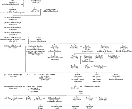 Select Family Tree of the Spencer-Churchills mentioned in the text