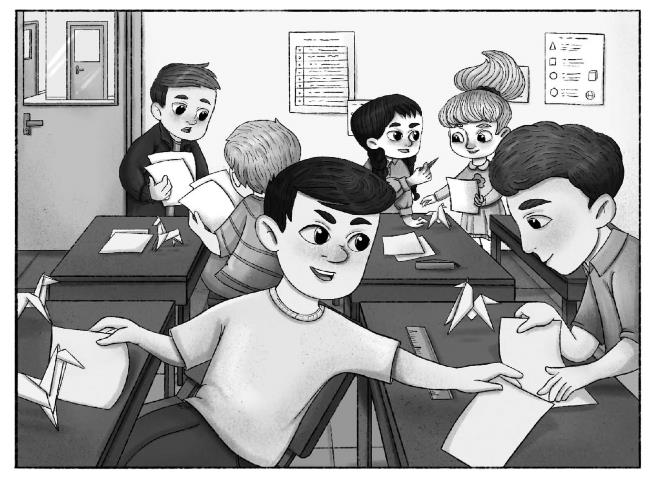 – Что ж, – сказала учительница, когда шум в классе снова стих, – остался последний элемент: дать задание. Я сейчас раздам вам листы цветной бумаги и схемы, по которым вы сможете сложить единорога в технике оригами. У меня, например, получился вот такой, похожий на китайского цилиня. – С этими словами она показала нам жёлтую фигурку, раскрашенную цветными узорами.