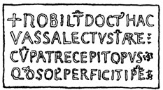 There are three or four details regarding it which deserve notice. The design of this exquisite structure has been attributed, as usual, to one of the Cosmatis; but it belongs to Pietro Vassalletto and his son. In demolishing one of the clumsy buttresses, which were built two centuries ago against the colonnade of the south side, count Vespignani discovered (1887) the authentic signatures of both artists, in the inscription which is here reproduced. It is thus translated: "I, Vassalectus, a noble and skilful master in my profession, have finished alone this work which I began in company with my father."114 Their school lasted for four generations, from 1153 to the middle of the following century, and ranks next in importance to that of the Cosmatis. Many of their productions are signed, as for example the episcopal chair in the church of S. Andrea at Anagni, dated 1263; a screen in the cathedral of Segni, dated 1185; the candelabra in S. Paolo fuori le Mura; the lion in the porch of SS. Apostoli; the canopy in SS. Cosma e Damiano, dated 1153; fragments of an inlaid screen in the studio of the illustrious artist, Señor Villegas, etc. We are in the habit of asserting that only the Renaissance masters studied and were inspired by the antique; but the fascination of ancient art was equally felt by their early precursors of the twelfth century. The archway in the middle of the south side of these cloisters (opposite the one represented in our illustration) rests on sphinxes, one of which is bearded. The human-headed monsters, wearing the claft or nemes, images of Egyptian Pharaohs, were obviously modelled in imitation of ancient originals. Nor is this the only case. The gate of S. Antonio on the Esquiline is also supported by crouching sphinxes (a. d. 1269). It has been suggested that such works were inspired by crusaders who had seen the wonders of Egypt. But if the reader remembers what I said about the Temple of Isis in the Campus Martius, in chapter ii., p. 92, he will at once perceive how the Vassalletti were able to draw their Egyptian models from a much nearer source. A fact mentioned by Winckelmann115 proves that one of them owned and studied a statue of Æsculapius, in the plinth of which he actually engraved his own name, [V]ASSALECTVS. The statue was seen by Winckelmann in the Verospi palace, but I have not been able to ascertain its present location. In these same cloisters are some delightful figures of saints, in high relief, from an old ciborium. One of them, representing S. John the Baptist, is obviously modelled on the type of an Antinous, with the same abundance of curly hair, the same profile and characteristic eyebrows. In October, 1886, I actually saw a mediæval stonecutter's shop, dating perhaps from the eleventh or twelfth century, in which the place of honor was given to a statue of Antinous. The fact is so remarkable for an age in which statues were sought, not as models, but as material for the limekiln, that I beg leave to describe it.