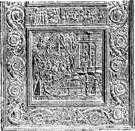 In a second and much larger chamber ten marble sarcophagi were discovered, precious as works of art, but devoid of historical interest, because no name is engraved upon them. Perhaps the experience of their ancestors warned the Calpurnii of later generations not to tempt obnoxious fate again, but to adhere to obscurity and retirement, even in the secrecy of the family vault. As a work of art, each of the coffins is a choice specimen of Roman funeral sculpture of the second century of our era. Some are simply decorated with festoons, winged genii, scenic masks, or chimeras; others with scenes relating to the Bacchic cycle, such as the infancy of the god, his triumphal return from India, and his desertion of Ariadne in the island of Naxos. The finest sarcophagus, of which we give an illustration, represents the rape of the daughters of Leukippos by Castor and Pollux.