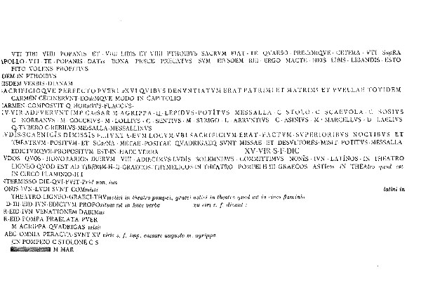 THE ENDINSCRIPTION COMMEMORATING THE LUDI SÆCULARES CELEBRATED IN THE YEAR 17, B. C